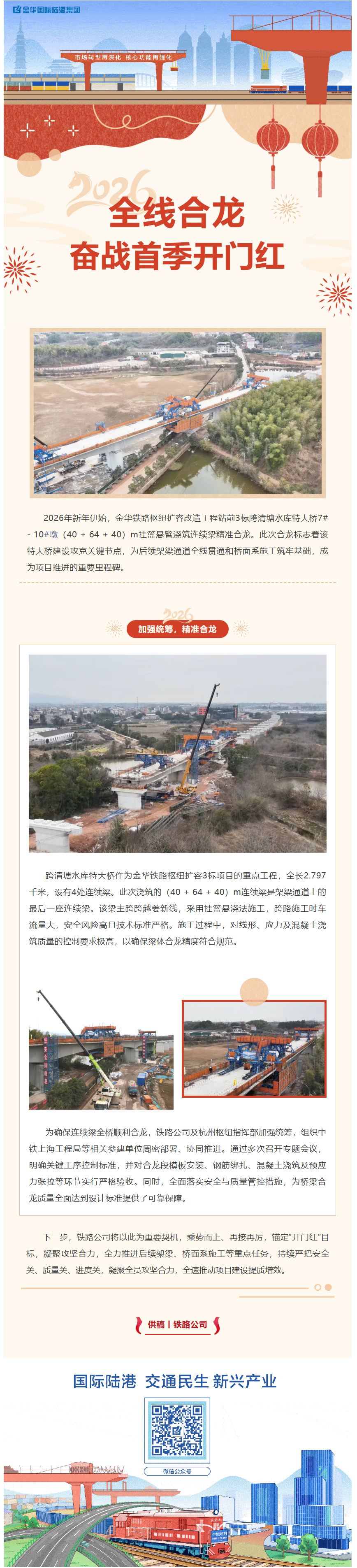 金華鐵路樞紐3標(biāo) 跨清塘水庫(kù)特大橋連續(xù)梁全線合龍